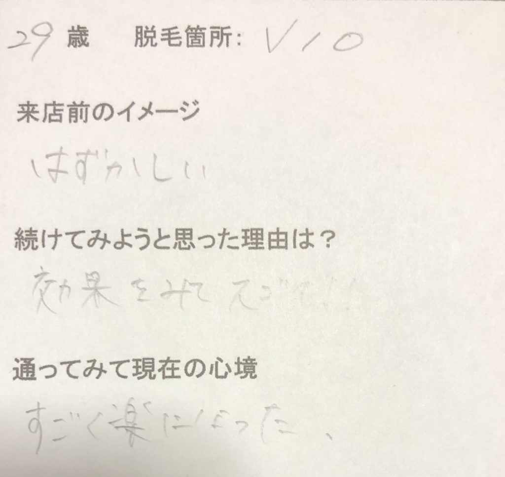 VIOの脱毛はやりたいけれど相談する、いざ施術するということが恥ずかしいと悩んでいるお客様がたくさんいらっしゃいます。